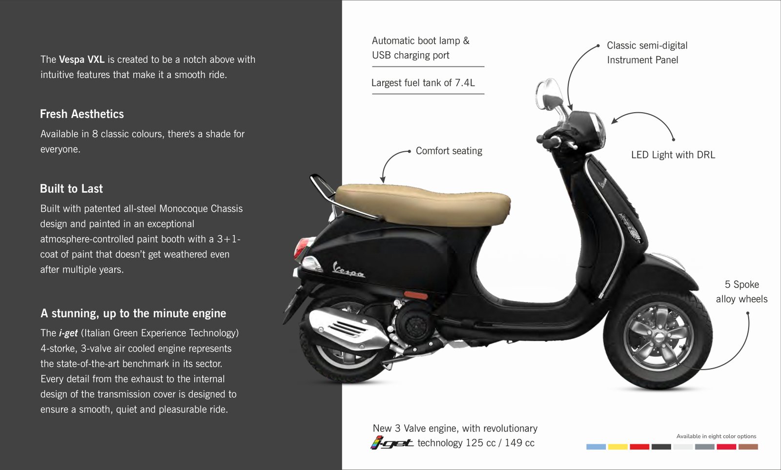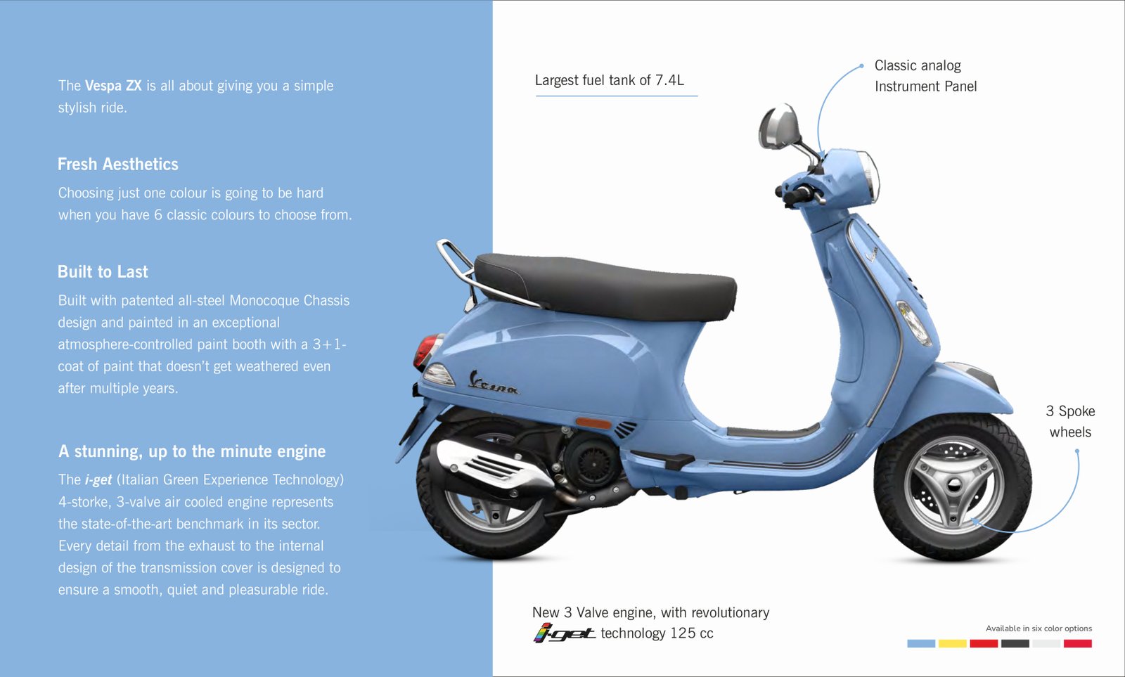 A testament to the visionaries of the world - those who make the most of the present and strive for a better future. This marvellous ride adds a touch of flamboyance to your entrance, whether at pub crawls or at weekend gig. With its sleek design and striking colours, it is a chic fashion statement for those making a mark on the world and building legacies. Hop onto the Vespa Classic for there’s never a dull moment when you ride a timeless piece of art.